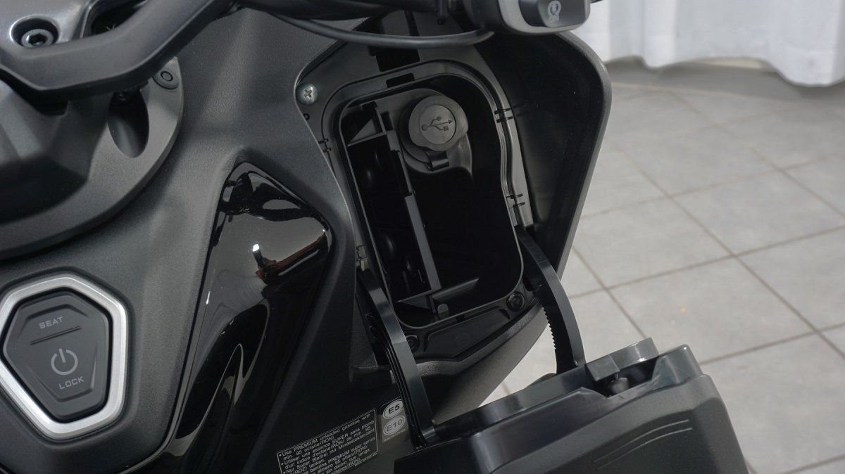 - Wasserdichtes Smartphone-Staufach mit USB-Anschluss