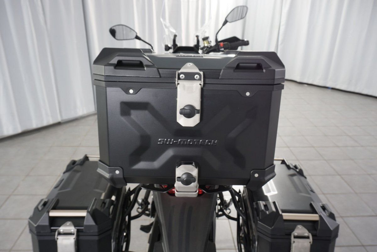 • Sturzbügel, Touringscheibe, hochwertige Sitzbank, Seitenkoffer und Topcase mit Innentaschen,
