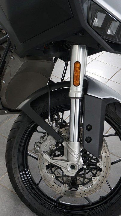 - Showa Gabel 47 mm (Big Piston - Separate Function Cartridge Fork), Federvorspannung, Druck- und Zugstufendämpfung einstellbar