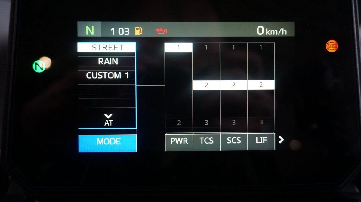 - Schräglagensensitive Traktionskontrolle mit 3-Modi (TCS)